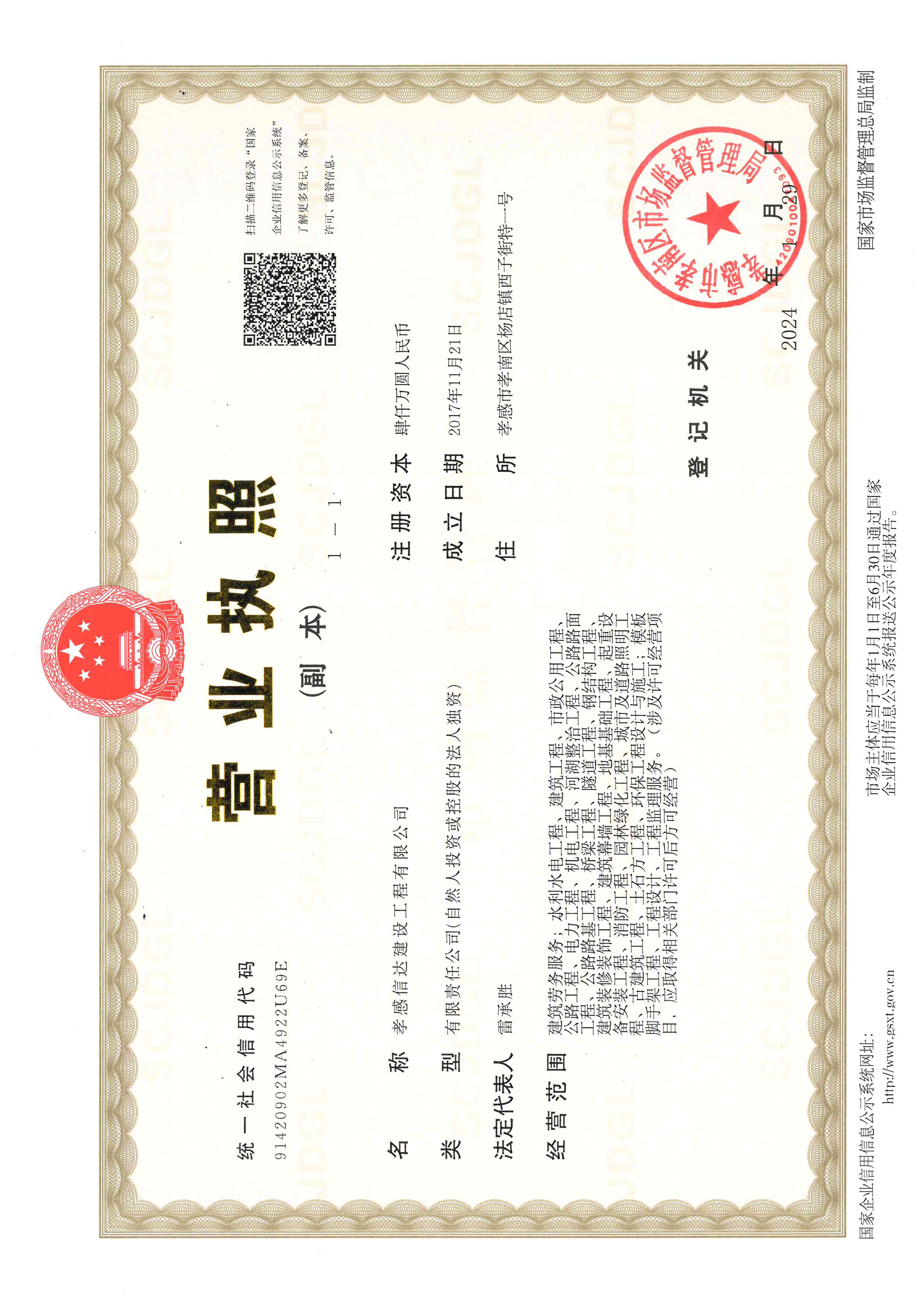 我公司擁有市政公用工程施工總承包貳級、環(huán)保工程專業(yè)承包貳級及水利水電工程施工總承包貳級資質(zhì),經(jīng)營范圍:建筑勞務服務;水利水電工程、建筑工程、市政公用工程、公路工程、電力工程、機電工程、河湖整治工程、公路路面工程、公路路基工程、橋梁工程、隧道工程、鋼結構工程、建筑裝修裝飾工程、建筑幕墻工程、地基基礎工程、起重設備安裝工程、消防工程、園林綠化工程、城市及道路照明工程、古建筑工程、土石方工程、環(huán)保工程設計與施工;模板腳手架工程、工程設計、工程監(jiān)理服務等。